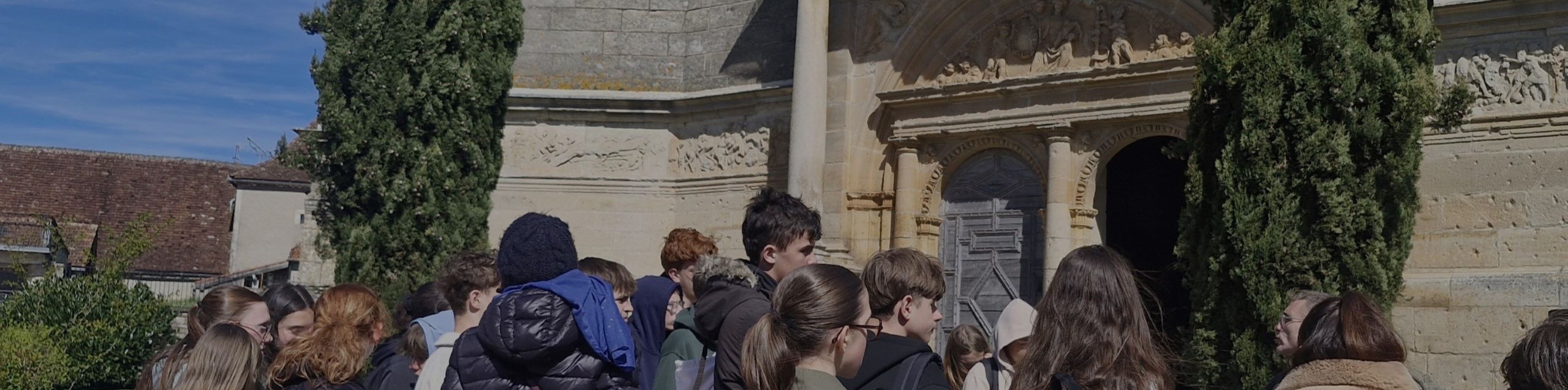 Les élèves ont pu observer les décors de l'impressionnante frise en grès ornant la périphérie extérieure de l'église Saint-Pierre sur plus de 100 mètres de long. Ces bas-reliefs expriment le destin glorieux de Galiot à travers des symboles et récits militaires sculptés.